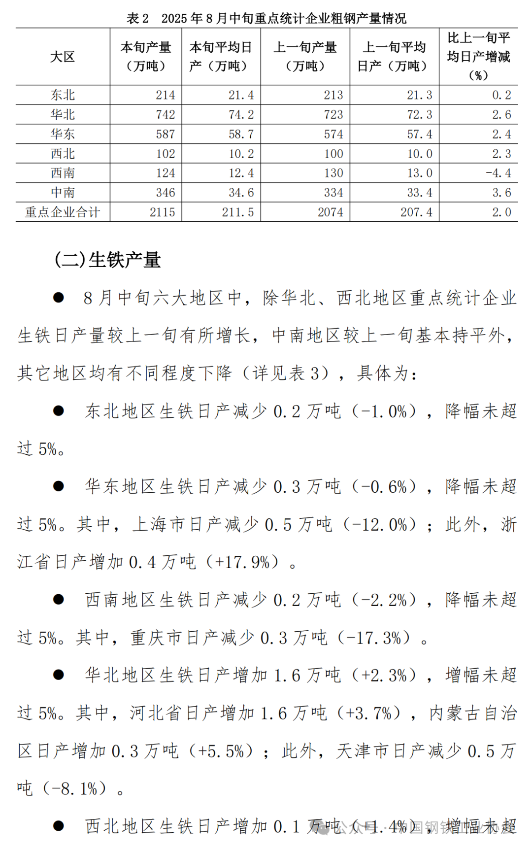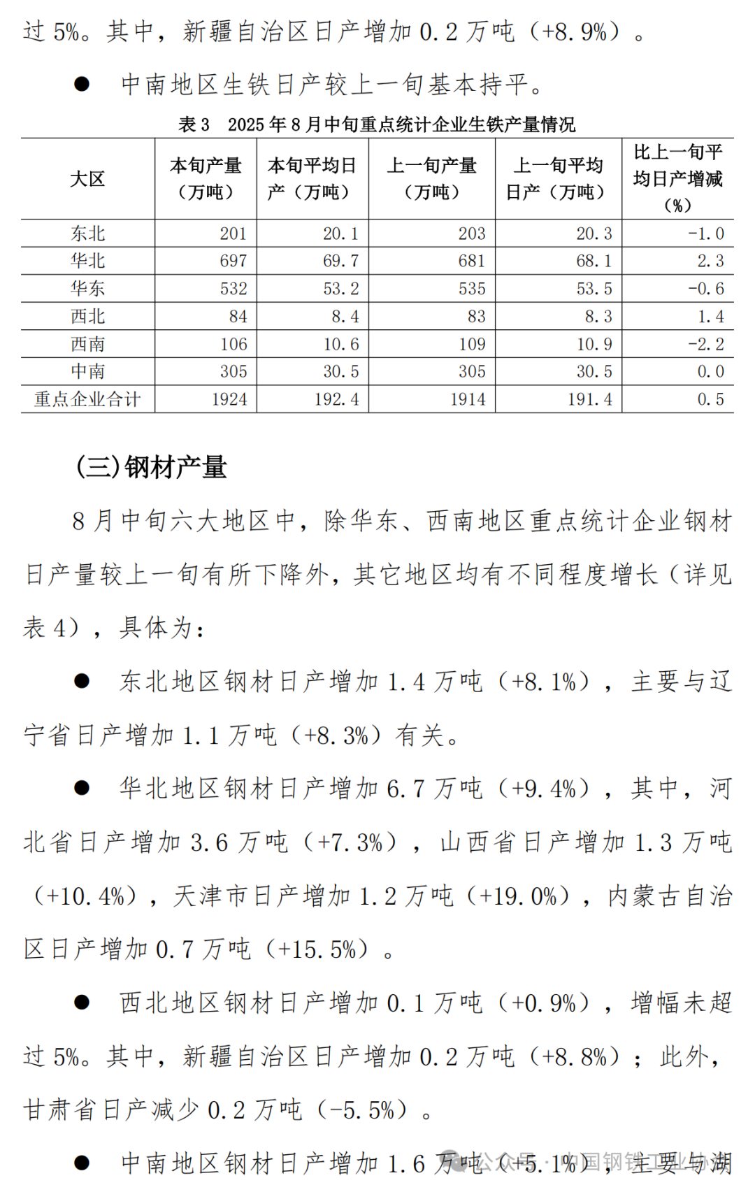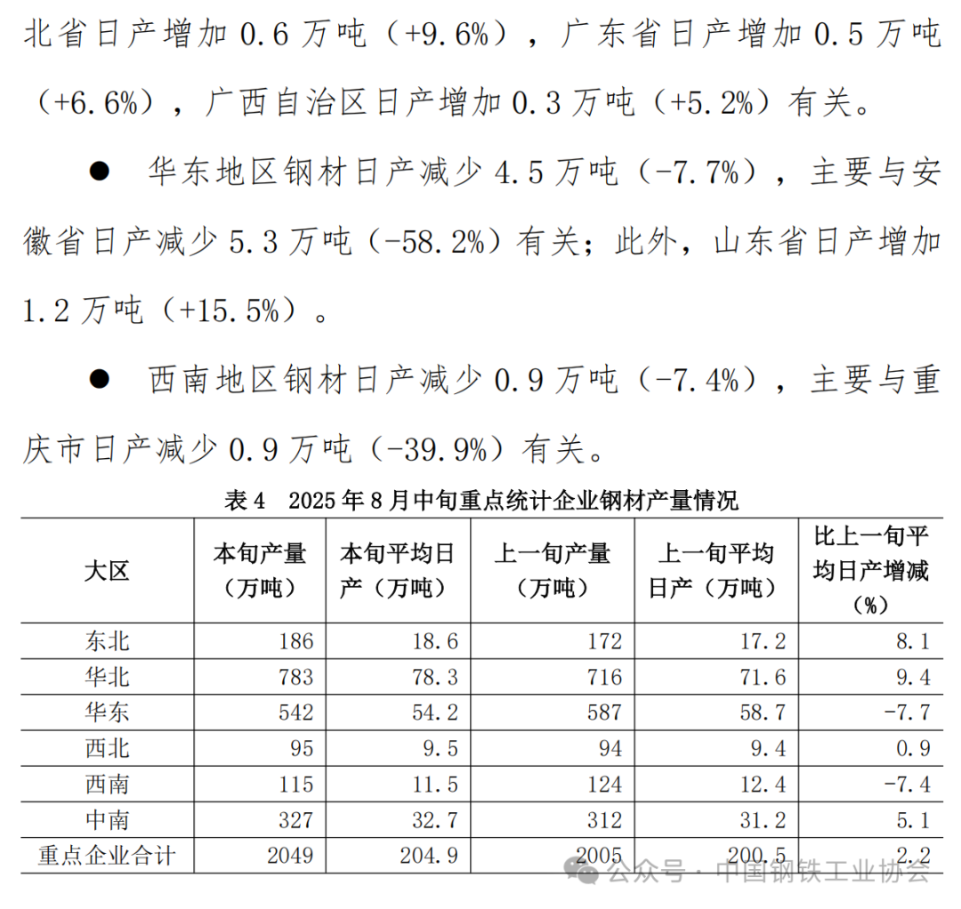 2025年8月中旬重點企業(yè)鋼鐵產(chǎn)量旬報