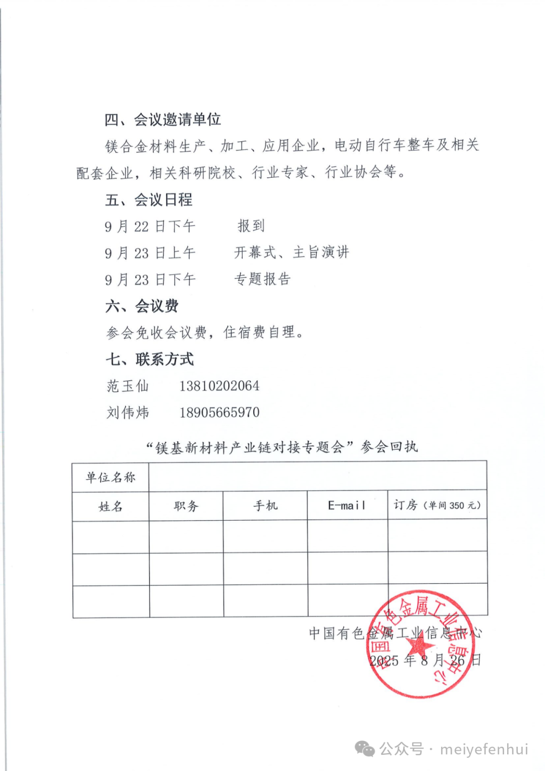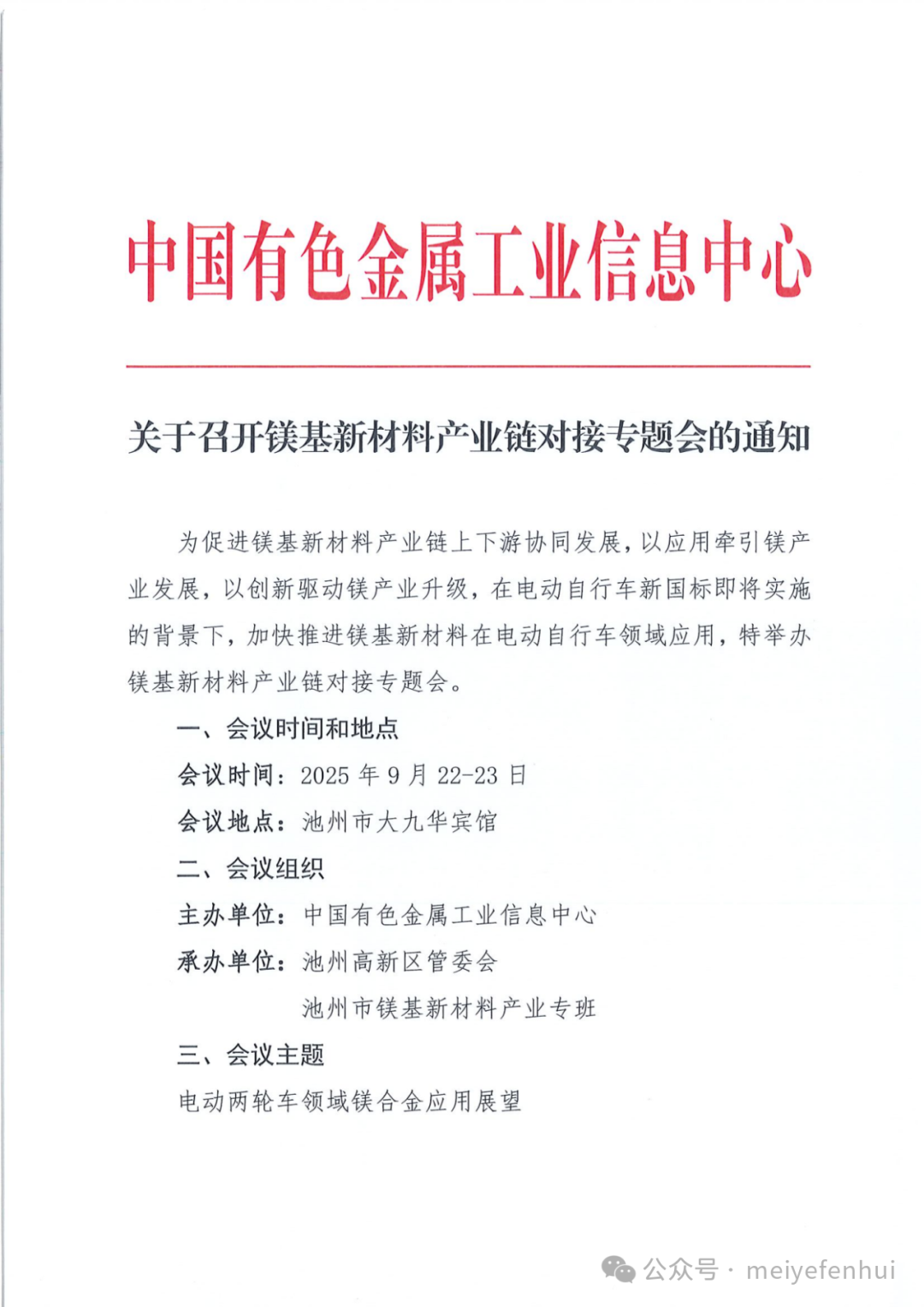 關(guān)于召開(kāi)鎂基新材料產(chǎn)業(yè)鏈對(duì)接專(zhuān)題會(huì)的通知