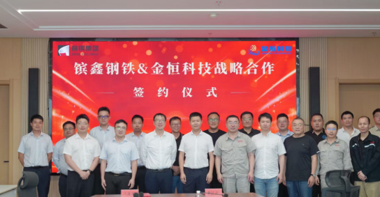 8月28日,金恒科技與江蘇省鑌鑫鋼鐵集團有限公司(以下簡稱:鑌鑫鋼鐵)舉行戰(zhàn)略合作簽約儀式。鑌鑫鋼鐵副董事長林滔、總工程師程乃良,金恒科技黨委書記、董事長李福存,副總經(jīng)理江海洋等出席簽字儀式。