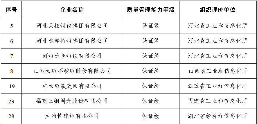 9月1日,工業(yè)和信息化部公布首批質(zhì)量管理能力高等級企業(yè)名單。