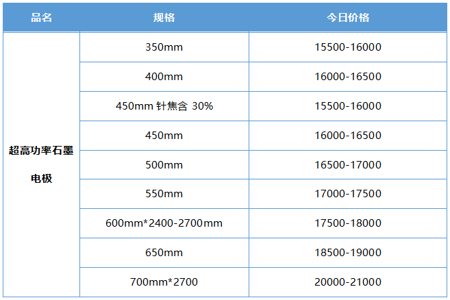 9月2日超高功率石墨電極價(jià)格行情(主流廠家/元/噸)
