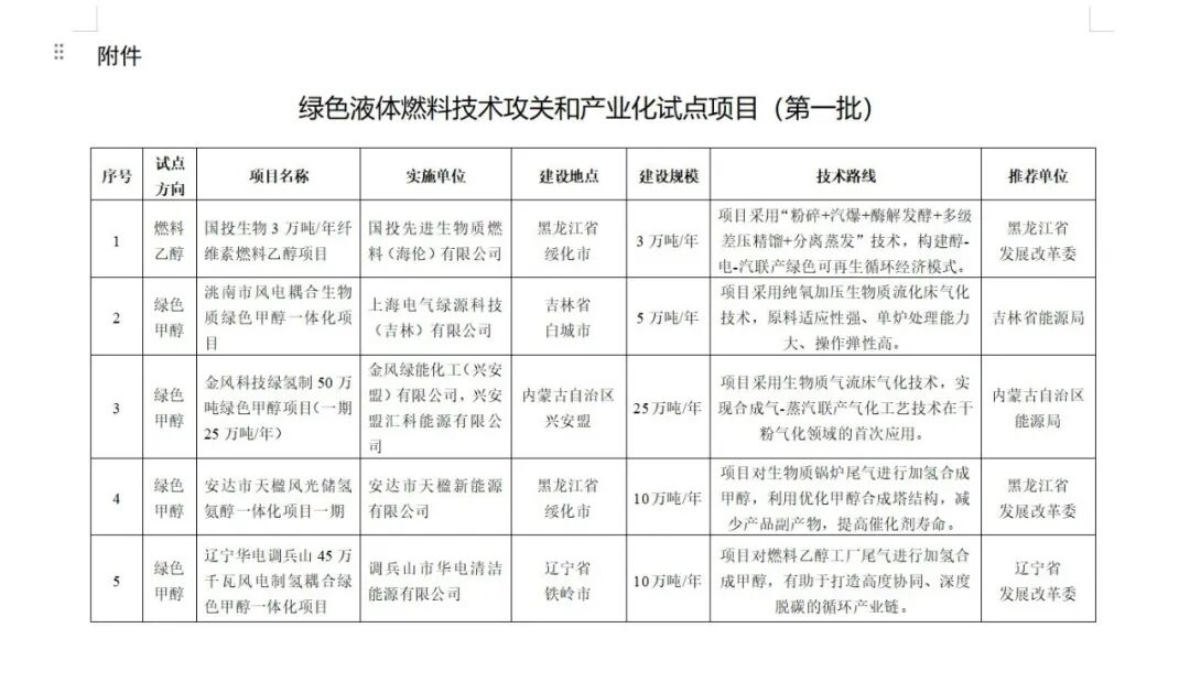 附件:綠色液體燃料技術(shù)攻關(guān)和產(chǎn)業(yè)化試點項目(第一批)