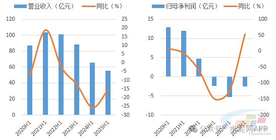 圖1、2:2025年上半年山水水泥營(yíng)收、利潤(rùn)走勢(shì)
