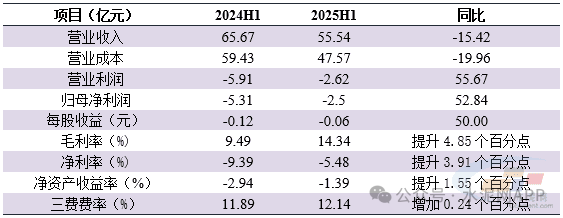 表1:2025年上半年山水水泥主要財(cái)務(wù)指標(biāo)