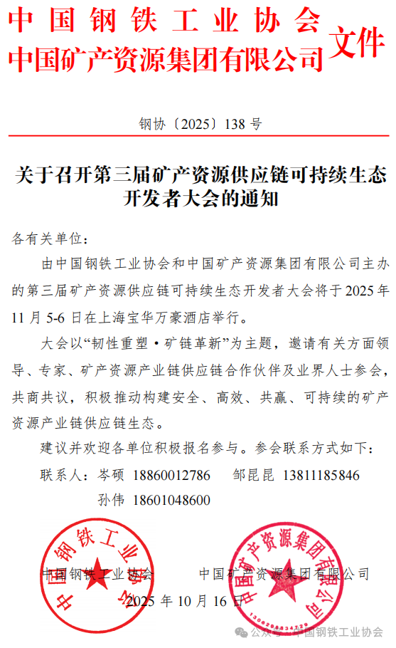 關(guān)于召開第三屆礦產(chǎn)資源供應(yīng)鏈可持續(xù)生態(tài)開發(fā)者大會(huì)的通知