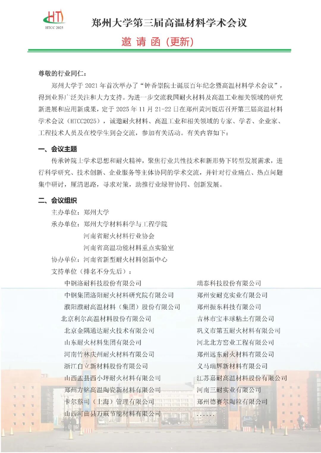 鄭州大學(xué)第三屆高溫材料學(xué)術(shù)會議 邀請函