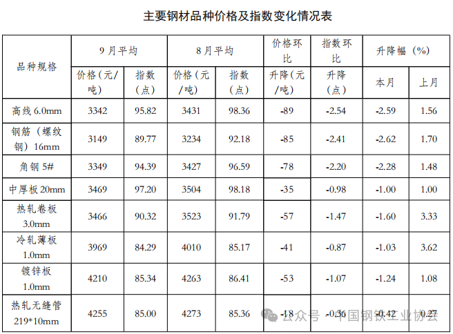 一、9月份國內(nèi)鋼材綜合價(jià)格指數(shù)均值環(huán)比有所下降