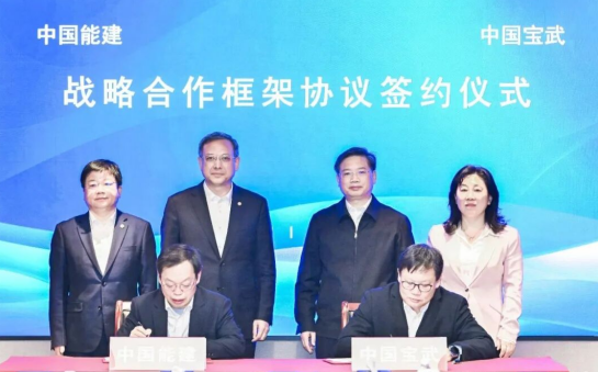 11月5日下午,中國寶武與中國能建在寶武大廈簽署戰(zhàn)略合作框架協(xié)議。胡望明與倪真見證簽約。
