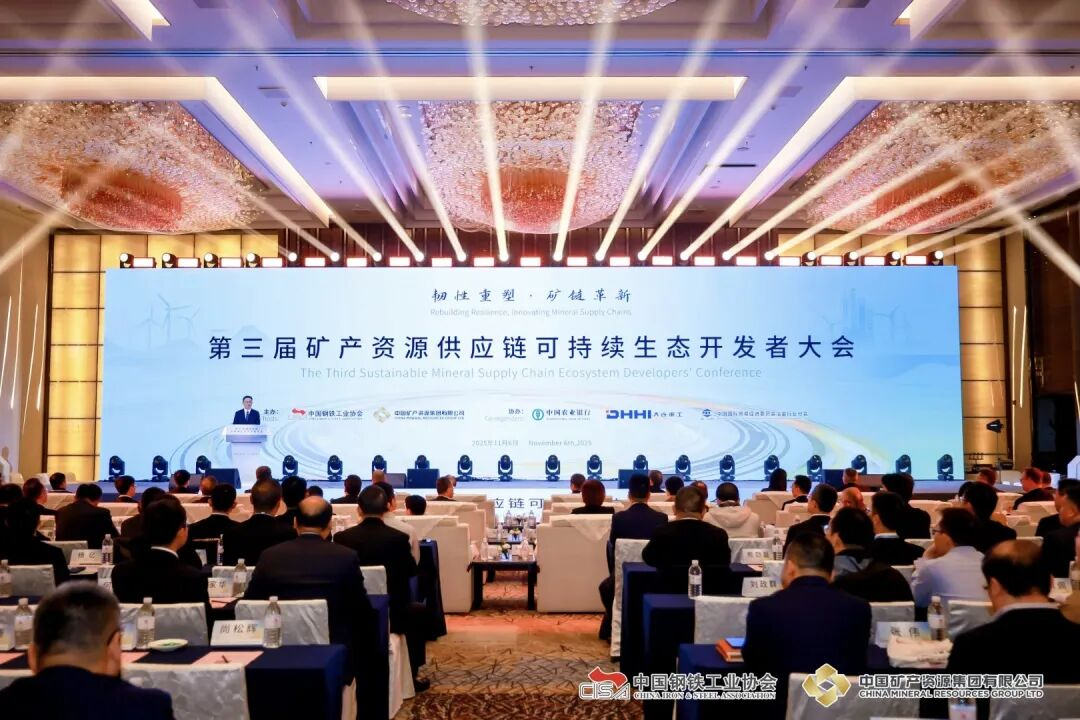 11月6日,第三屆礦產(chǎn)資源供應(yīng)鏈可持續(xù)生態(tài)開發(fā)者大會在上海召開。大會由中國鋼鐵工業(yè)協(xié)會和中國礦產(chǎn)資源集團聯(lián)合主辦,中國農(nóng)業(yè)銀行股份有限公司、大連重工裝備集團有限公司、中國國際貿(mào)易促進委員會冶金行業(yè)分會協(xié)辦。來自政府部門、行業(yè)協(xié)會,鋼鐵冶金、國際礦山、再生資源、港口航運、金融貿(mào)易等行業(yè)企業(yè)和研究機構(gòu)的近400名中外嘉賓和專家學者參會,圍繞“韌性重塑·礦鏈革新”主題,共商共謀礦產(chǎn)資源供應(yīng)鏈發(fā)展之路。