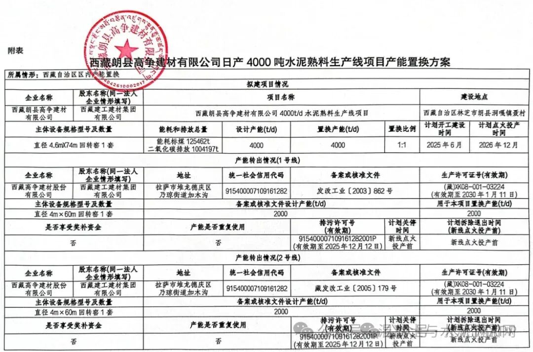 近日,西藏天路發(fā)布三季報(bào),其中提到,2025年1月,公司控股子公司西藏高爭(zhēng)建材股份有限公司(持股51%)與西藏藏建水泥有限公司(持股 25%)、林芝市城市投資有限責(zé)任公司(持股13%)、朗縣城市投資有限責(zé)任公司(持股11%)共同成立了“西藏朗縣高爭(zhēng)建材有限公司”,注冊(cè)資本3500萬(wàn)元,對(duì)外投資構(gòu)成的關(guān)聯(lián)交易事項(xiàng)已經(jīng)公司總經(jīng)理辦公會(huì)審議通過(guò)。目前,西藏朗縣高爭(zhēng)建材有限公司通過(guò)自治區(qū)區(qū)內(nèi)產(chǎn)能置換方式在林芝市朗縣建設(shè)一條4000t/d水泥熟料生產(chǎn)線項(xiàng)目,已完成用地預(yù)審、產(chǎn)能置換、項(xiàng)目備案、農(nóng)用地轉(zhuǎn)建設(shè)用地以及礦山“兩報(bào)告一方案”評(píng)審等工作。西藏朗縣高爭(zhēng)建材有限公司正在辦理環(huán)評(píng)、土地使用權(quán)出讓等審批程序。據(jù)悉,4月23日,西藏經(jīng)信廳發(fā)布“關(guān)于西藏朗縣高爭(zhēng)建材有限公司4000t/d水泥熟料生產(chǎn)線項(xiàng)目產(chǎn)能置換方案的公示”。