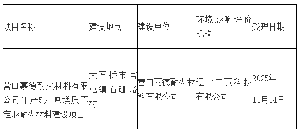附件:營(yíng)口嘉德耐火材料有限公司年產(chǎn)5萬(wàn)噸鎂質(zhì)不定形耐火材料建設(shè)項(xiàng)目(公示稿)
