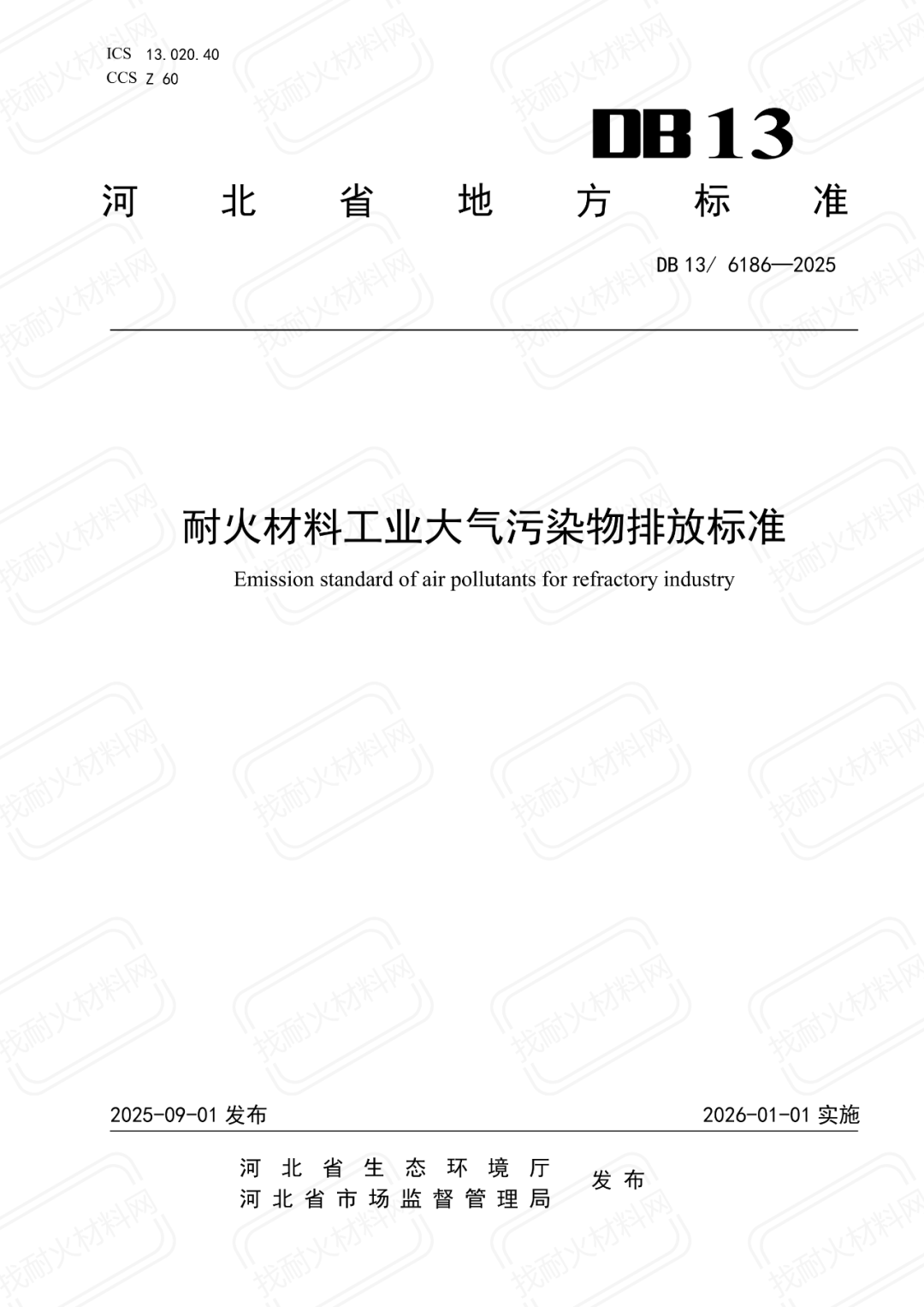 本文件規(guī)定了耐火材料工業(yè)企業(yè)或生產(chǎn)設(shè)施的大氣污染物排放限值及控制要求、大氣污染物監(jiān)測要求、達標(biāo)判定要求以及實施與監(jiān)督。