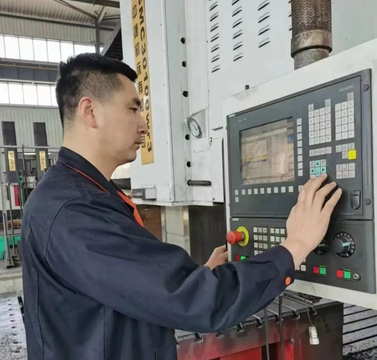 11月14日上午9時(shí)許,營(yíng)口鍛壓機(jī)床有限責(zé)任公司機(jī)加車(chē)間內(nèi)工人忙碌,機(jī)器轟鳴。一臺(tái)10米數(shù)控龍門(mén)銑床旁,工藝室主任殷曉鵬正在為出口印度的4000噸級(jí)數(shù)控電動(dòng)螺旋壓力機(jī)加工零件。