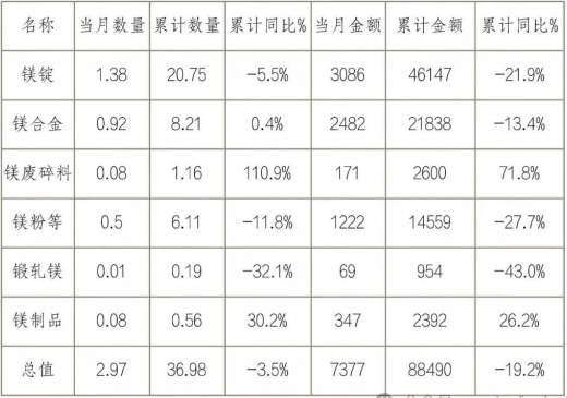 2025年1-10月中國各類鎂產(chǎn)品出口統(tǒng)計(jì)情況 (單位:萬噸、萬美元)