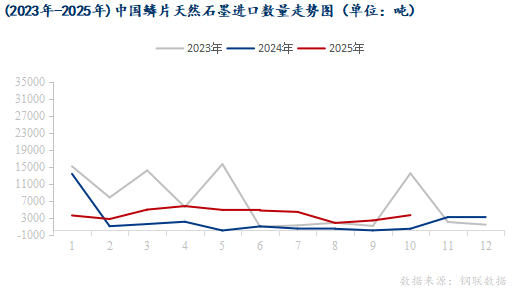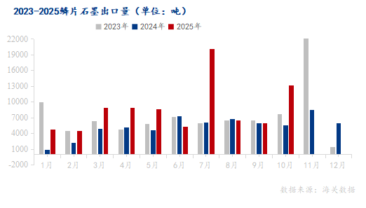 10月天然鱗片石墨出口量環(huán)比大幅上漲超過(guò)五成,反映了國(guó)際市場(chǎng)下游行業(yè)為滿足生產(chǎn)需求,進(jìn)行了積極的原料采購(gòu)。受國(guó)際貿(mào)易環(huán)境不確定性影響,海外客戶多持觀望態(tài)度。雖然在新能源車推動(dòng)下,負(fù)極材料需求增長(zhǎng),但人造石墨負(fù)極因技術(shù)成熟和低價(jià)競(jìng)爭(zhēng),削弱了天然鱗片石墨的成本優(yōu)勢(shì)。綜合來(lái)看,預(yù)計(jì)12月份天然鱗片石墨出口量將面臨下行壓力。