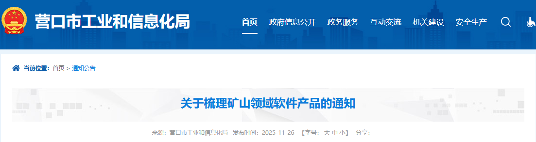 為落實省委主要領導指示精神,結合我市關于礦山改造相關工作部署,現(xiàn)對全市礦山領域軟件研發(fā)的企業(yè)和產品進行梳理摸底。請各單位深入對接轄區(qū)內相關企業(yè),將企業(yè)應用于礦山領域的優(yōu)勢軟件產品或系統(tǒng)(包括但不限于生產計劃、設備管理、人員管理、安全監(jiān)控、地質勘探等)梳理匯總,于12月1日前報送至營口市工業(yè)和信息化局電子郵箱:ykxxhrh@163.com。
