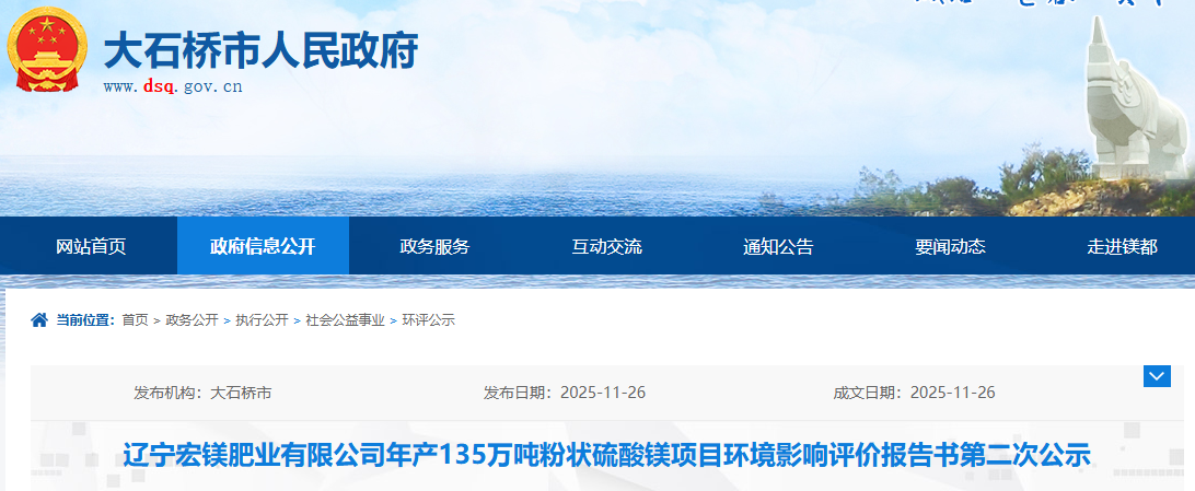電子版報告下載:征求意見稿-遼寧宏鎂肥業(yè)有限公司年產135萬噸粉狀硫酸鎂項目環(huán)境影響報告書