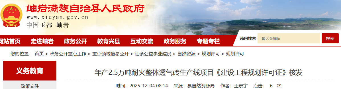 許可內(nèi)容:年產(chǎn)2.5萬(wàn)噸耐火整體透氣磚生產(chǎn)線(xiàn)項(xiàng)目