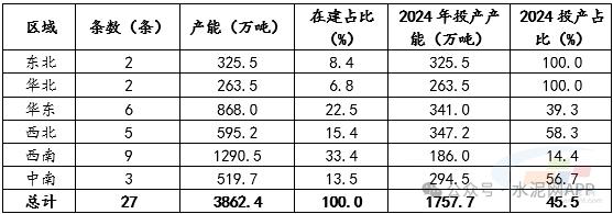 表:六大區(qū)域在建熟料產(chǎn)能情況