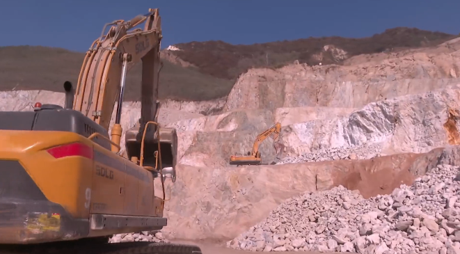 海城鑫億礦業(yè)的采礦現(xiàn)場同樣一派繁忙景象:數(shù)臺挖掘機、裝載機鐵臂揮舞,轟隆作響,將一塊塊菱鎂礦石精準挖裝;數(shù)十臺大貨車排起長隊,滿載著優(yōu)質(zhì)礦石奔赴各合作企業(yè)?!拔覀兌ㄏ铝恕母蓜?、重質(zhì)量、保安全,大干四季度’的目標,現(xiàn)在每個作業(yè)班都超額完成開采量,礦石質(zhì)量全部達標!” 總經(jīng)理宿希平指著忙碌的作業(yè)現(xiàn)場介紹,為保障生產(chǎn)效率,企業(yè)重點抓好設備維修保養(yǎng),讓機械設備運行時間和工作效率創(chuàng)下歷史新高。同時嚴格落實安全生產(chǎn)責任制,筑牢安全防線,為沖刺全年任務保駕護航。
