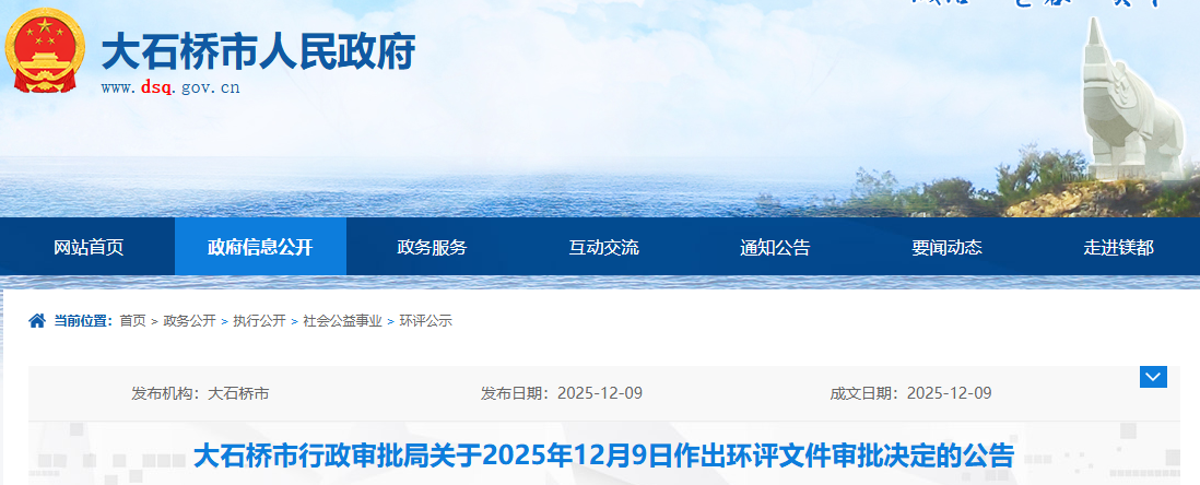 根據(jù)建設項目環(huán)境影響評價審批程序的有關(guān)規(guī)定,經(jīng)審查,我局對1個項目環(huán)境影響評價文件作出審批決定?,F(xiàn)將作出的審批決定情況予以公告,公告期為2025年12月9日-2025年12月15日(5個工作日)。