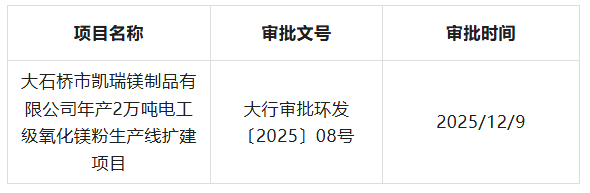 附件:關(guān)于大石橋市凱瑞鎂制品有限公司年產(chǎn)2萬噸電工級氧化鎂粉生產(chǎn)線擴建項目環(huán)境影響報告表的批復