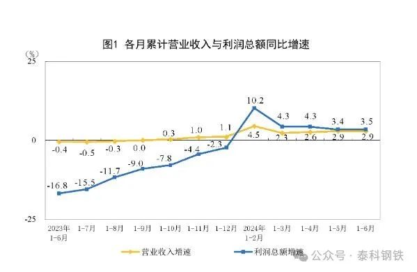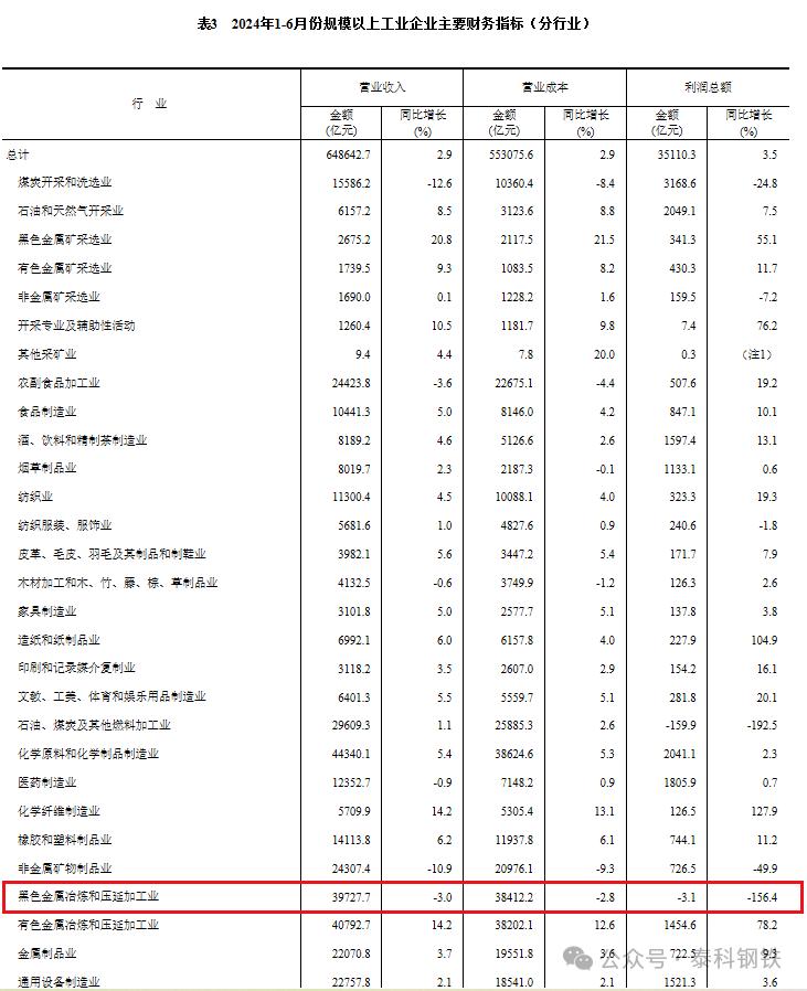 分行業(yè)看,在41個(gè)工業(yè)大類(lèi)行業(yè)中,有32個(gè)行業(yè)上半年利潤(rùn)同比增長(zhǎng),增長(zhǎng)面為78.0%,與1-5月份持平。受房地產(chǎn)新開(kāi)工面積降幅收窄、大規(guī)模設(shè)備更新政策效果顯現(xiàn)等因素推動(dòng),鋼鐵需求有所回升,二季度鋼鐵行業(yè)利潤(rùn)實(shí)現(xiàn)較快增長(zhǎng),扭轉(zhuǎn)了鋼鐵行業(yè)一季度全行業(yè)凈虧損的局面。(鋼鐵行業(yè)2024年1-3月虧損213.6億元,1-6月虧損3.1億元,這意味著第二季度,鋼鐵行業(yè)實(shí)現(xiàn)了利潤(rùn)總額210.5億元)。