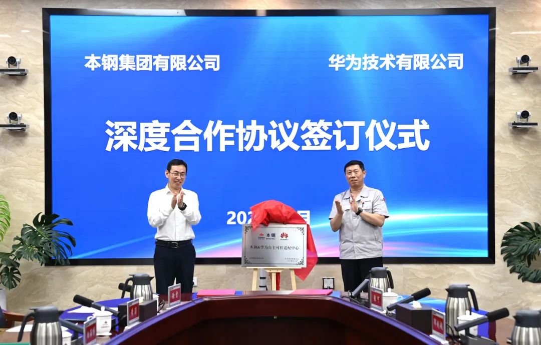 本鋼集團(tuán)與華為技術(shù)有限公司(以下簡(jiǎn)稱華為)在本鋼集團(tuán)總部簽署了深度戰(zhàn)略合作協(xié)議,并同時(shí)進(jìn)行了自主可控適配中心合作協(xié)議的簽訂及揭牌儀式。華為安信軍團(tuán)首席運(yùn)營(yíng)官曹澤軍,本鋼集團(tuán)總經(jīng)理、黨委副書記霍剛參加簽約儀式。