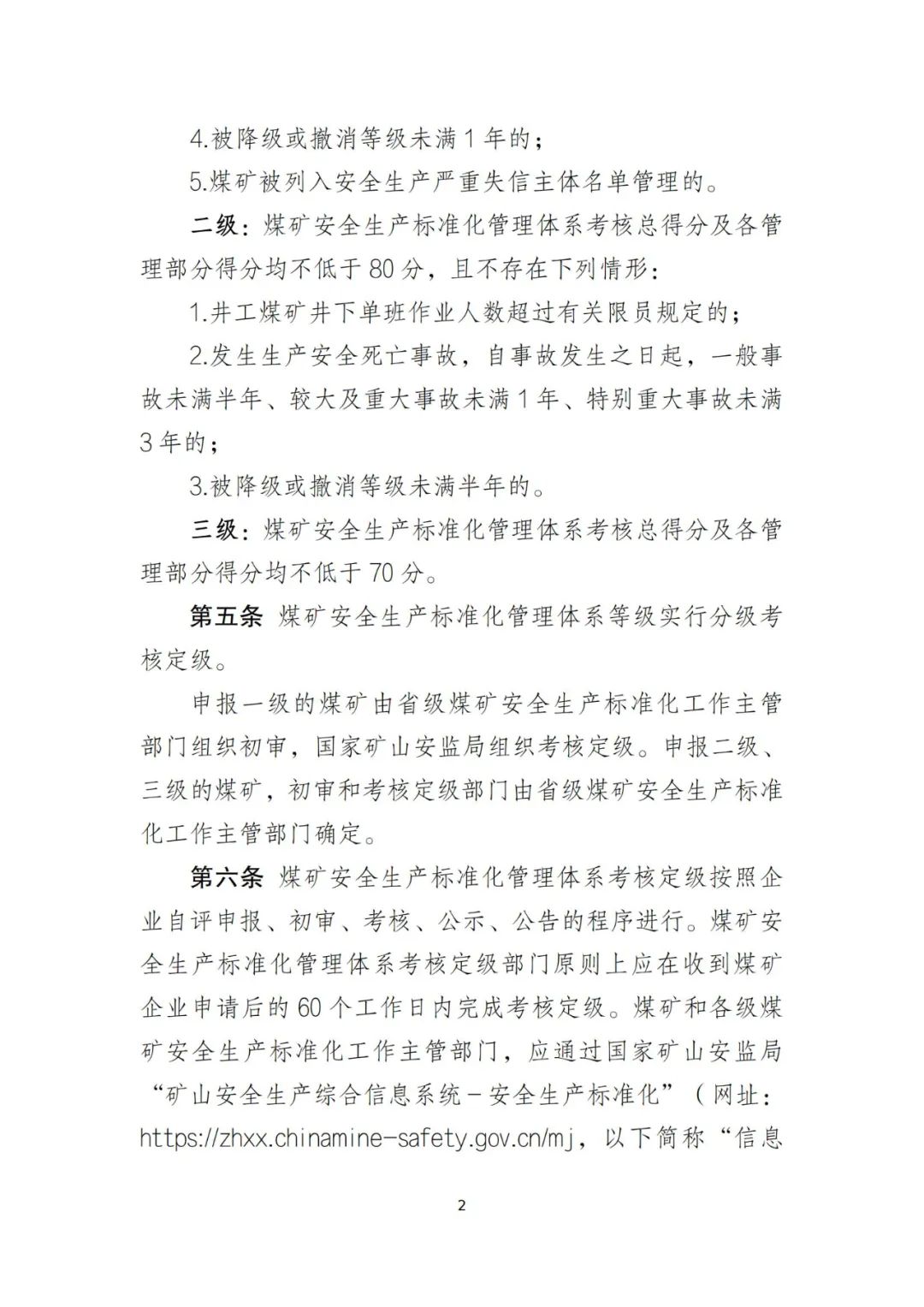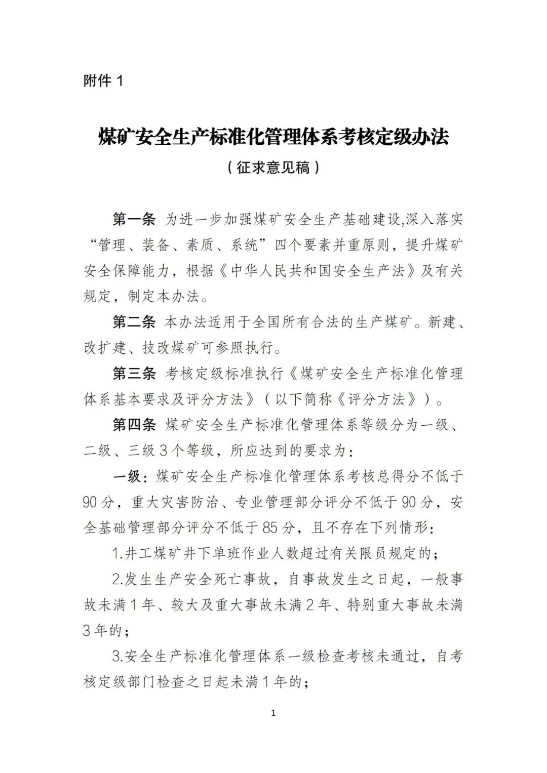 1.煤礦安全生產(chǎn)標(biāo)準(zhǔn)化管理體系考核定級辦法(征求意見稿)