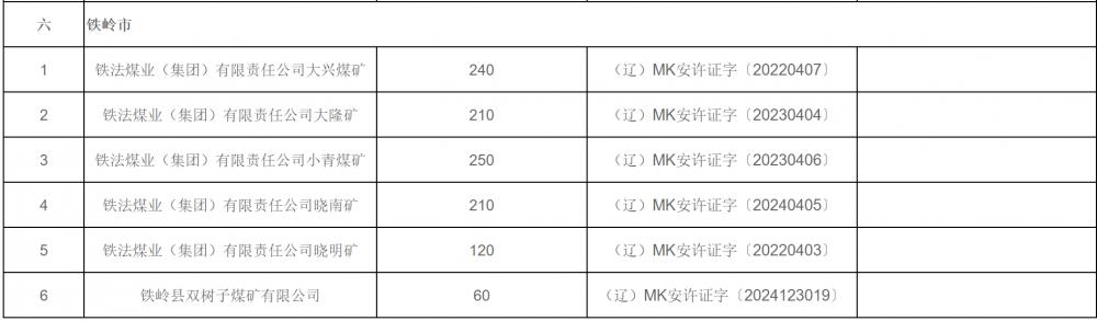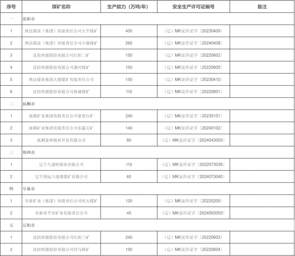 附件2:遼寧省煤礦生產(chǎn)能力公告表