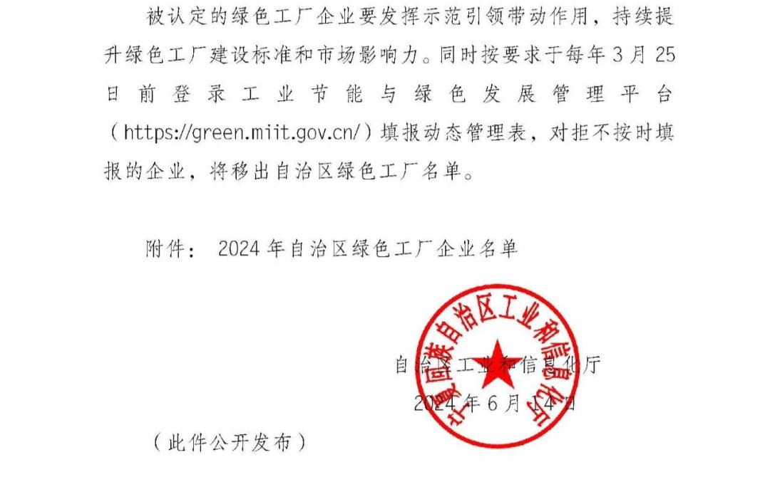 近日,寧夏回族自治區(qū)工業(yè)和信息化廳發(fā)布了關(guān)于認(rèn)定2024年自治區(qū)綠色工廠的通知,寧夏建龍成功入選2024年寧夏回族自治區(qū)綠色工廠企業(yè)名單,成為該公司綠色發(fā)展道路上的一個(gè)重要里程碑。