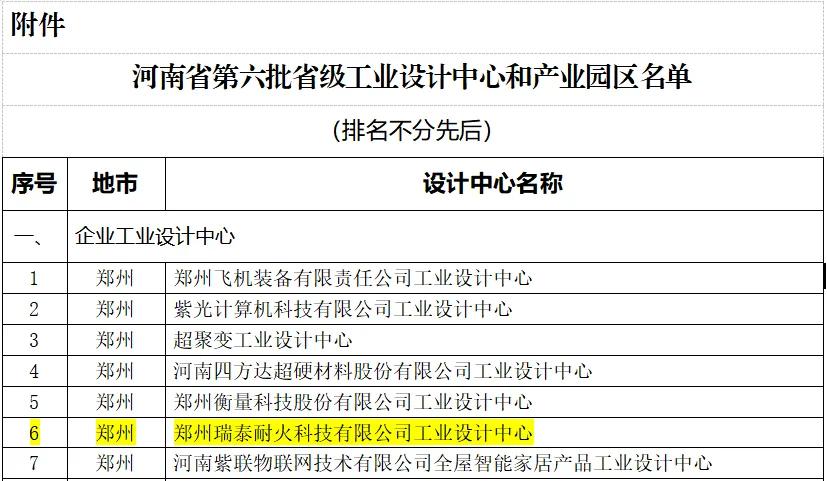 近日,河南省工業(yè)和信息化廳公布了“關(guān)于擬認(rèn)定河南省第六批省級工業(yè)設(shè)計中心名單的公示”,經(jīng)推薦、評審、公示等程序,鄭州瑞泰耐火科技有限公司工業(yè)設(shè)計中心正式獲批為河南省省級工業(yè)設(shè)計中心。