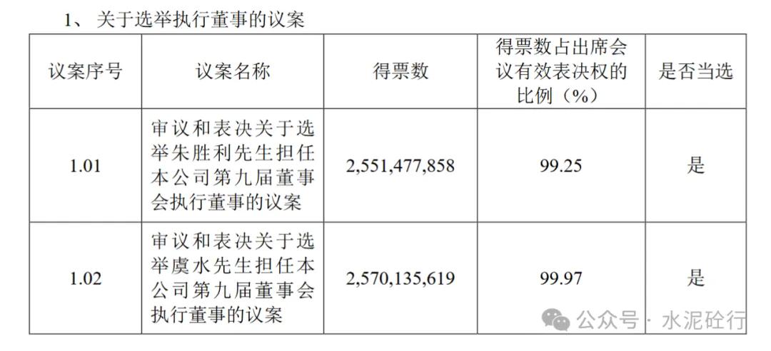 與此同時(shí),海螺水泥另一則公告顯示,朱勝利先生及虞水先生分別獲選舉及委任為第九屆董事會執(zhí)行董事,彼等任期自股東于臨時(shí)股東大會批準(zhǔn)之日(即2024年8月21日)起生效,至第九屆董事會任期屆滿之日(預(yù)計(jì)日期為2025年5月30日)止。