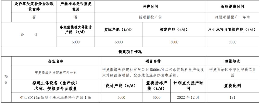 據(jù)寧夏工信廳此前發(fā)布,該項目原計劃2022年12月投產(chǎn)。產(chǎn)能置換方案如下:
