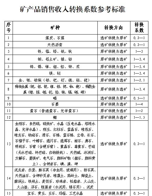 附件:礦產(chǎn)品銷售收入轉(zhuǎn)換系數(shù)參考標(biāo)準(zhǔn)