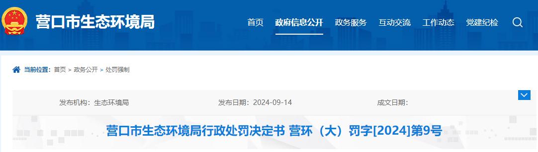 營口市生態(tài)環(huán)境局依據(jù)《中華人民共和國大氣污染防治法》第一百零八條第五項、《營口市生態(tài)環(huán)境行政處罰裁量基準規(guī)定(試行)》第八條第一項及《營口市生態(tài)環(huán)境局行政處罰自由裁量權實施標準(大氣類)》第25項的規(guī)定,決定對該企業(yè)作出罰款人民幣肆萬捌仟元的行政處罰。