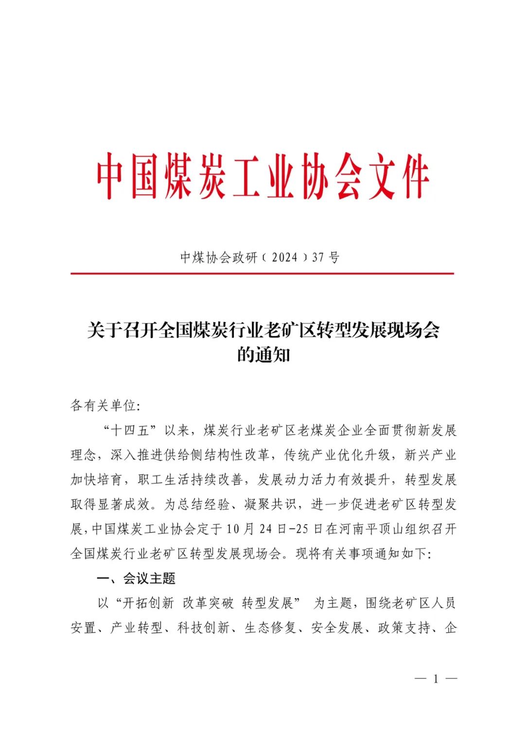 中國煤炭工業(yè)協會關于召開全國煤炭行業(yè)老礦區(qū)轉型發(fā)展現場會的通知