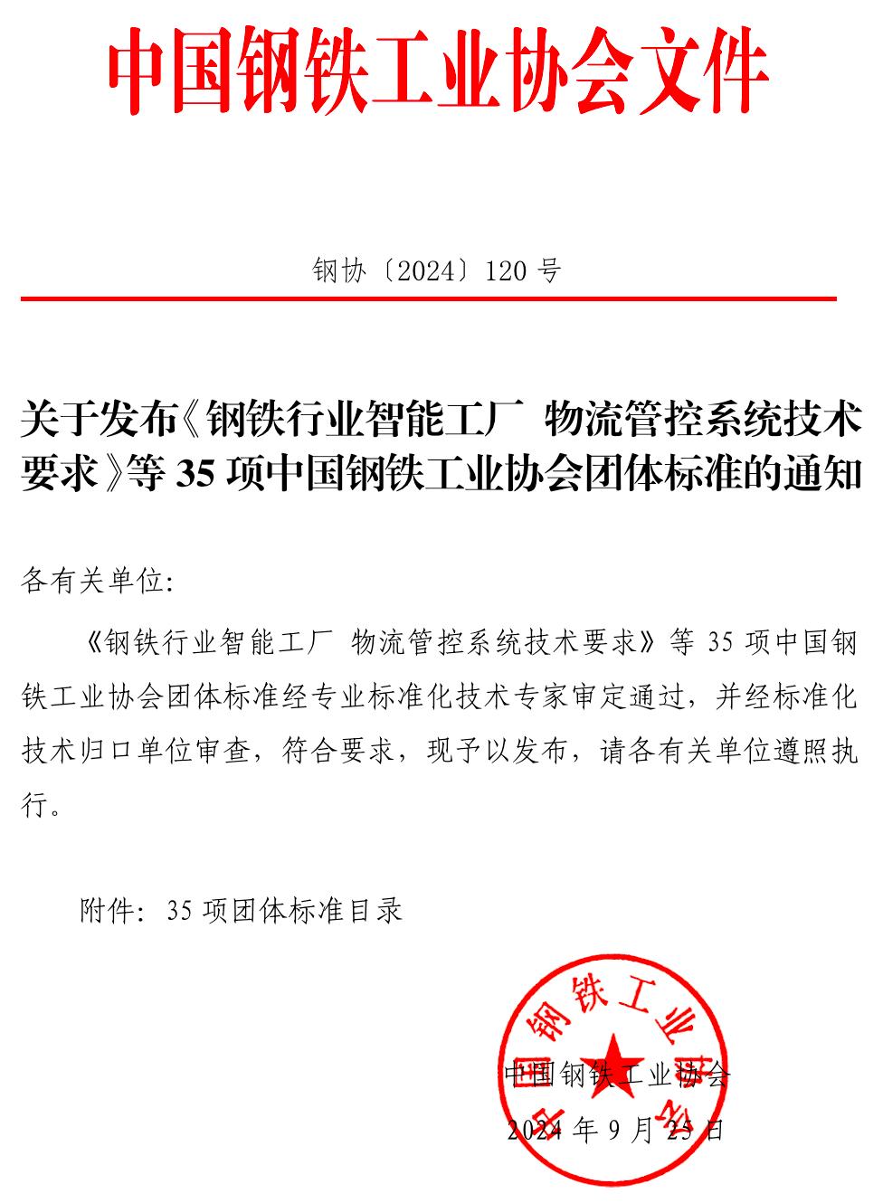 35項(xiàng)中國鋼鐵工業(yè)協(xié)會(huì)團(tuán)體標(biāo)準(zhǔn)發(fā)布?