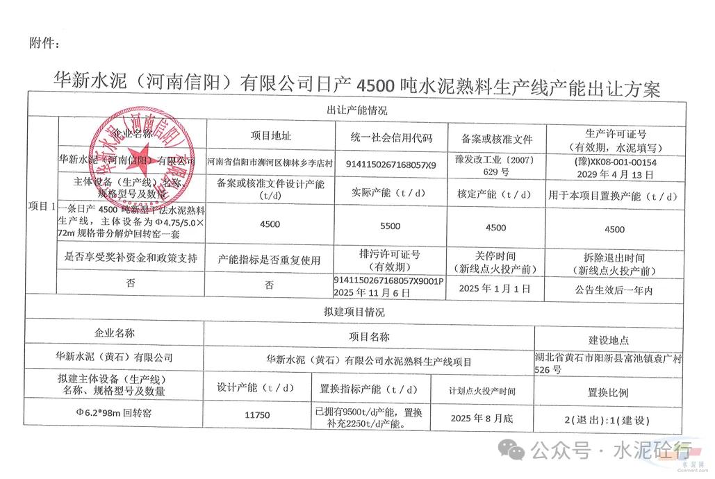 日前,信陽(yáng)市工信局發(fā)布《關(guān)于華新水泥(河南信陽(yáng))有限公司日產(chǎn)4500噸水泥熟料生產(chǎn)線產(chǎn)能擬置換出讓確認(rèn)的公示》稱,2024年9月27日,浉河區(qū)商務(wù)和工業(yè)信息化局向信陽(yáng)市工業(yè)和信息化局報(bào)送了《關(guān)于華新水泥(河南信陽(yáng))有限公司日產(chǎn)4500噸水泥熟料生產(chǎn)線產(chǎn)能出讓的報(bào)告》。根據(jù)《河南省工業(yè)和信息化廳關(guān)于印發(fā)河南省鋼鐵、電解鋁、水泥玻璃行業(yè)產(chǎn)能置換實(shí)施細(xì)則(試行)的通知》(豫工信材〔2021〕144號(hào))等有關(guān)文件規(guī)定,現(xiàn)將華新水泥(河南信陽(yáng))有限公司擬進(jìn)行日產(chǎn)4500噸水泥熟料生產(chǎn)線產(chǎn)能置換出讓的確認(rèn)產(chǎn)能有關(guān)情況進(jìn)行公示,歡迎社會(huì)公眾進(jìn)行監(jiān)督。
