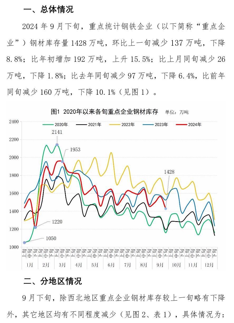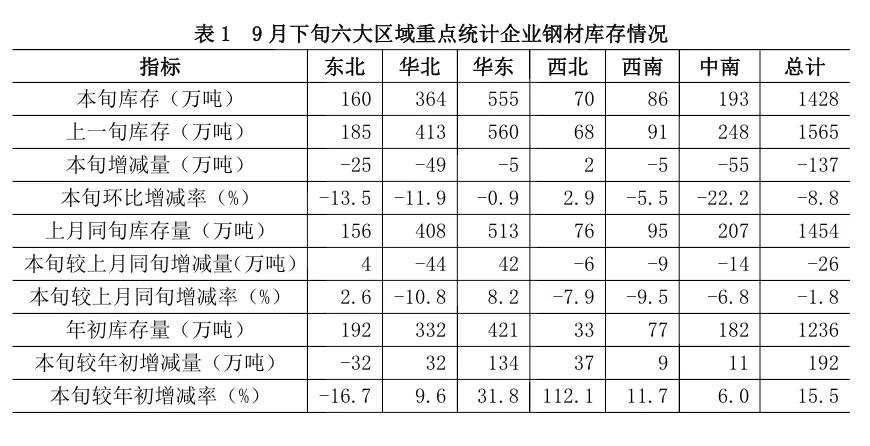 9月下旬重點(diǎn)企業(yè)鋼材庫存旬報(bào)