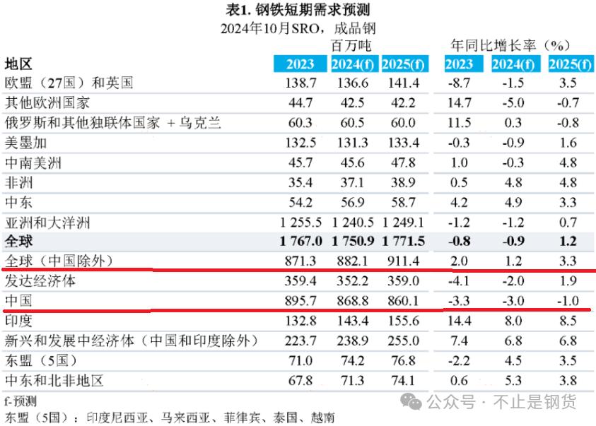 世界鋼鐵協會發(fā)布2024年10月版短期鋼鐵需求預測報告(有節(jié)選)