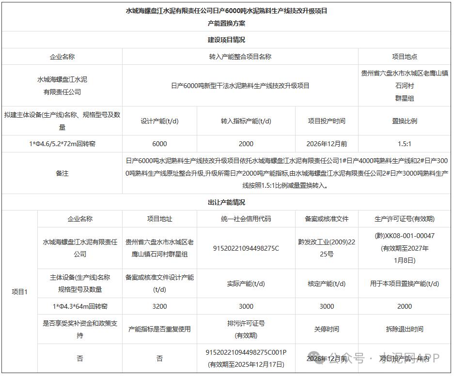 與此同時(shí),貴州省工信廳還發(fā)布“關(guān)于遵義海螺盤江水泥有限責(zé)任公司日產(chǎn)5750噸水泥熟料生產(chǎn)線技改升級(jí)項(xiàng)目產(chǎn)能置換方案的公示”。
