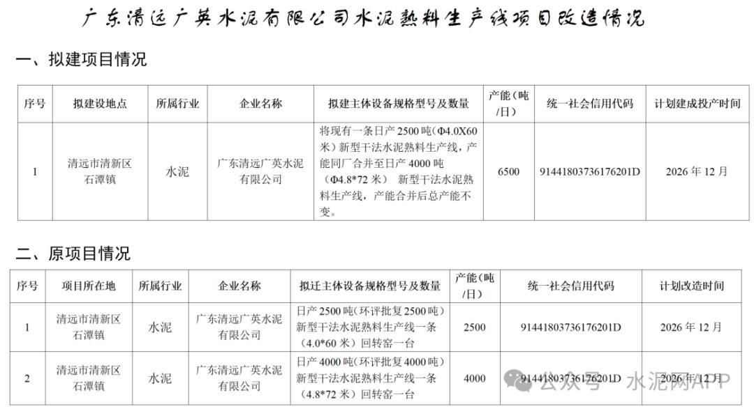 近日,廣東工信廳發(fā)布“關于廣東清遠廣英水泥有限公司水泥熟料生產(chǎn)線項目改造情況的公示”。