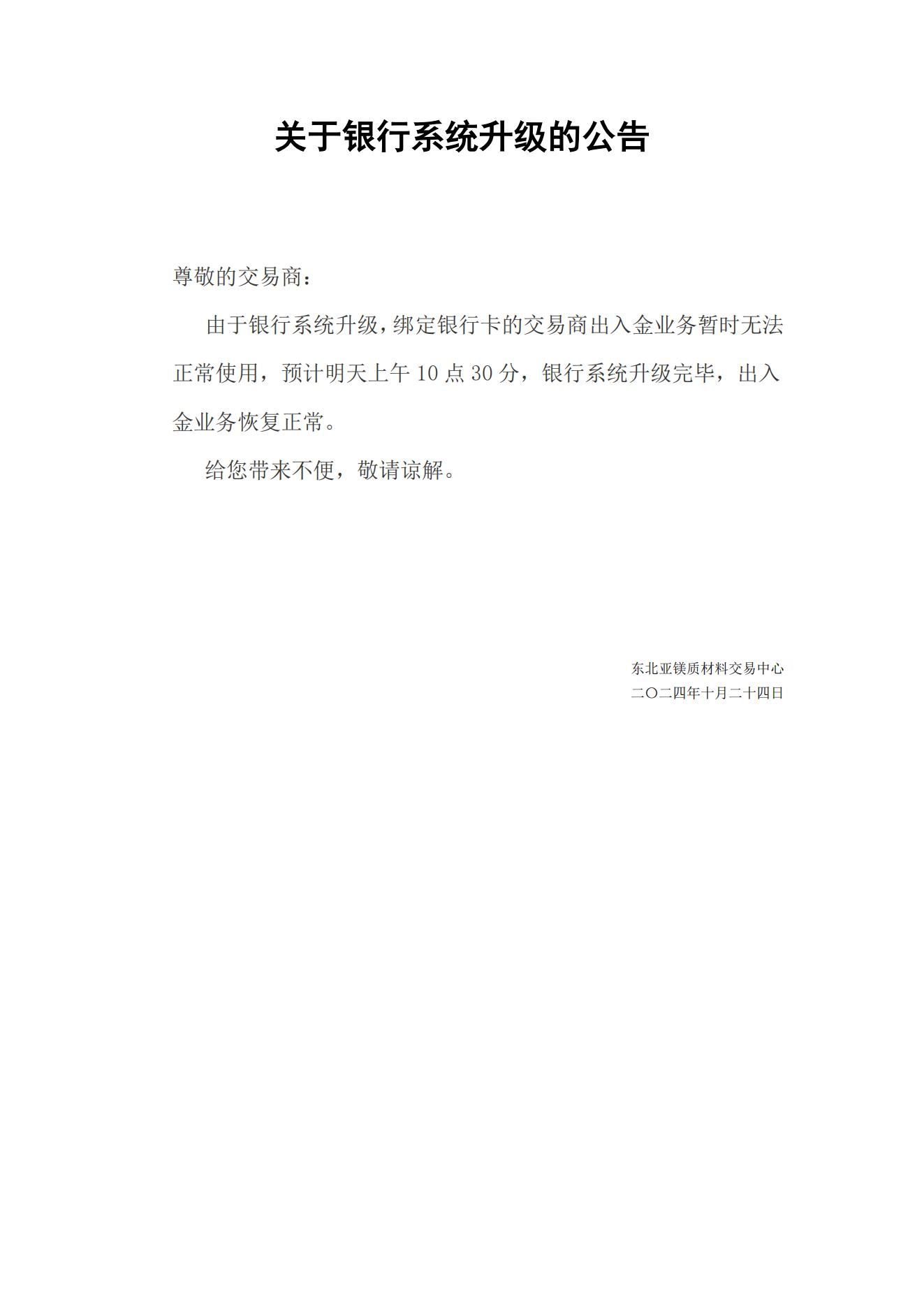 關(guān)于銀行系統(tǒng)升級(jí)的公告