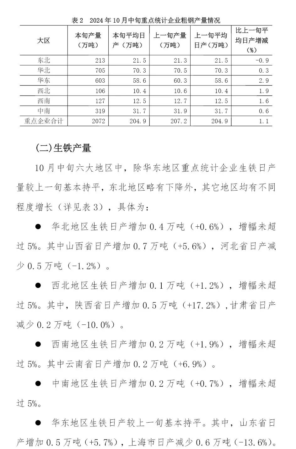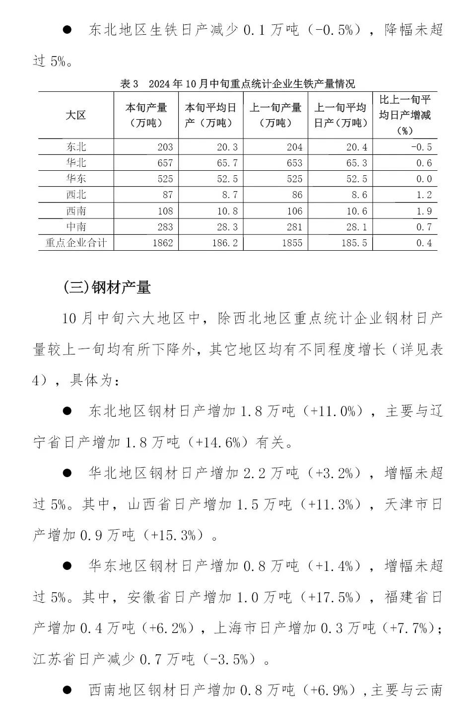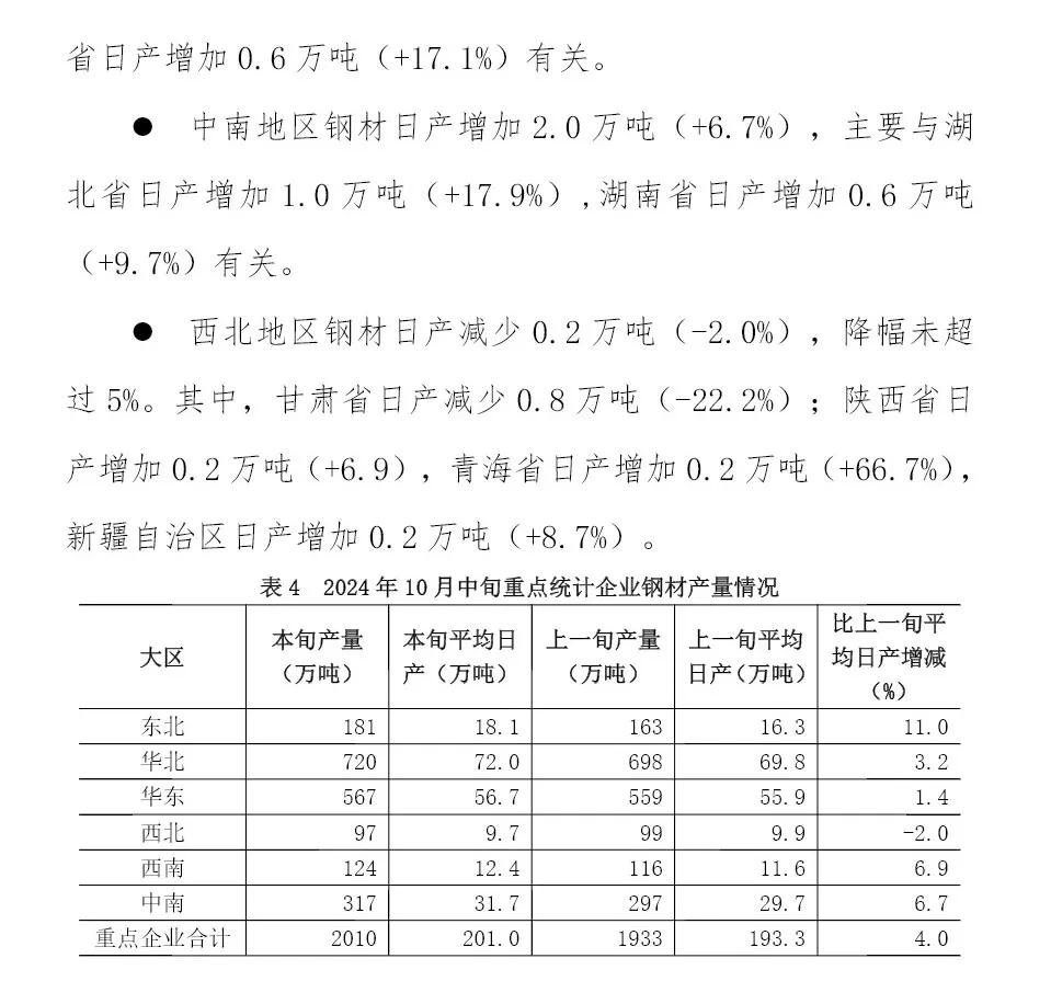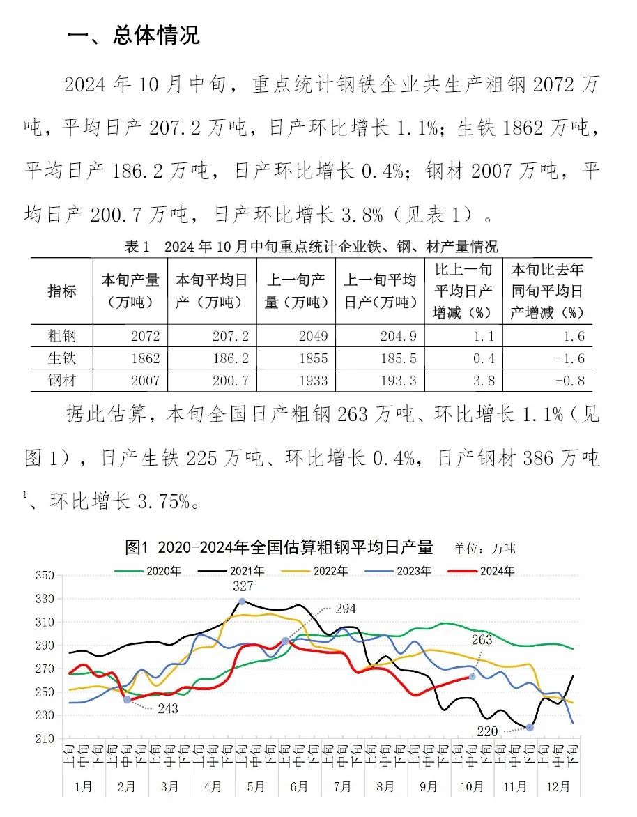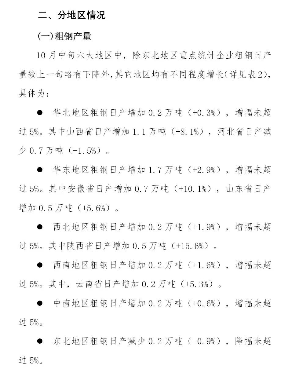 10月中旬重點(diǎn)企業(yè)鋼鐵產(chǎn)量旬報(bào)