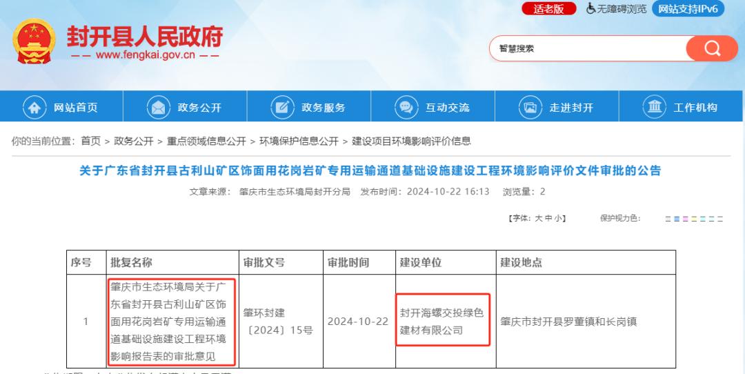 近日,廣東肇慶市生態(tài)環(huán)境局封開分局審批通過封開縣古利山礦區(qū)飾面用花崗巖礦專用運輸通道基礎設施建設工程環(huán)境影響評價文件。