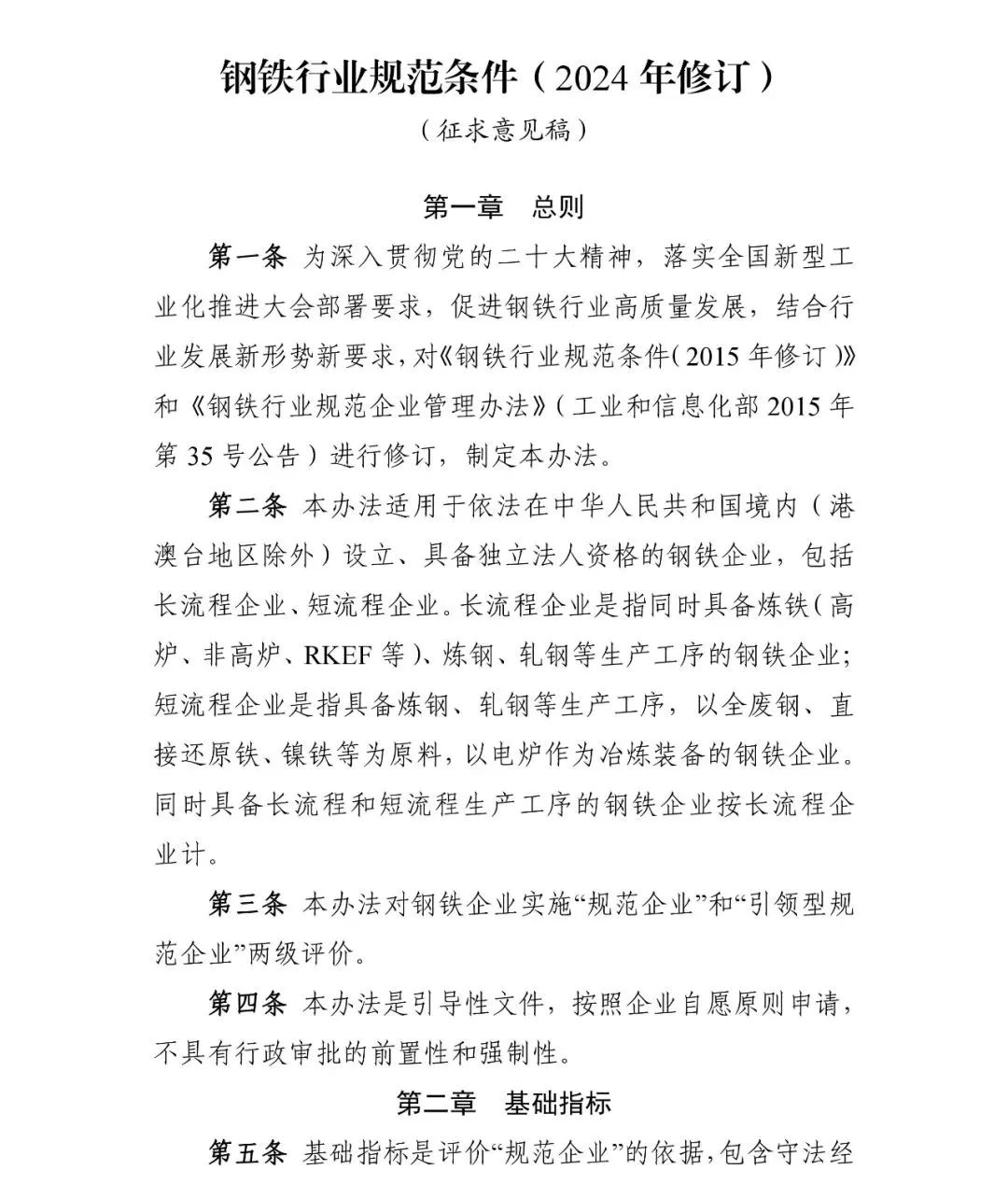 《鋼鐵行業(yè)規(guī)范條件(2024年修訂)(征求意見(jiàn)稿)》向社會(huì)公開(kāi)征求意見(jiàn)