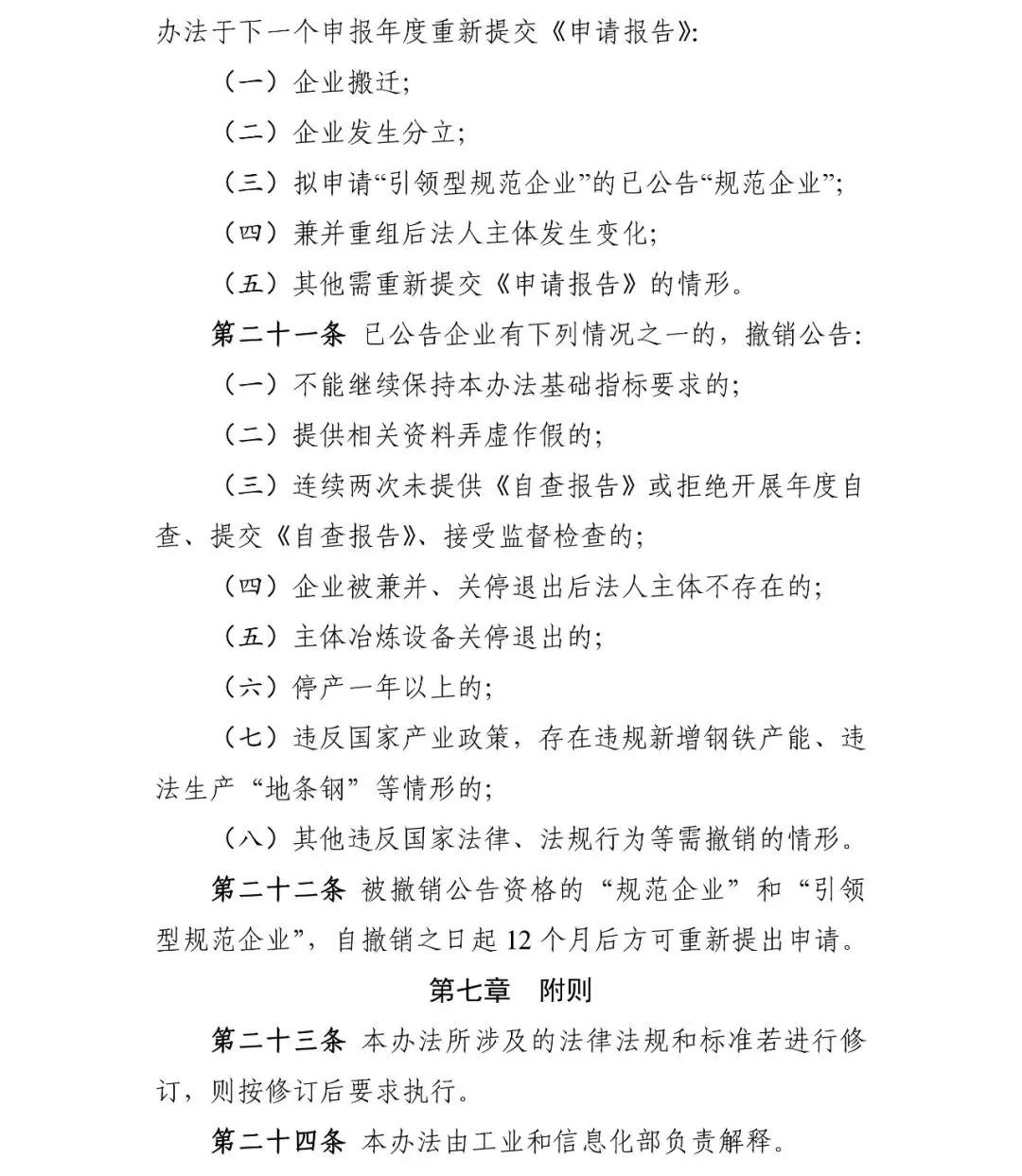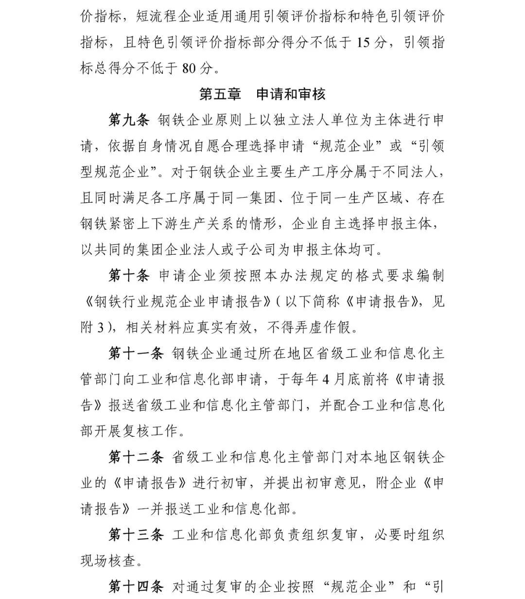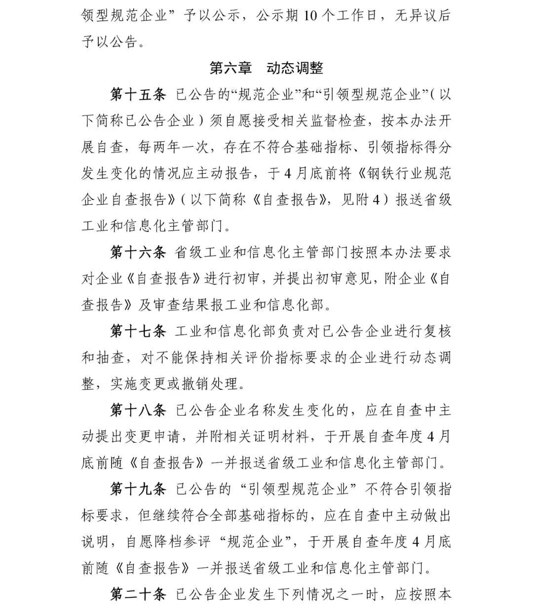 為落實(shí)全國(guó)新型工業(yè)化推進(jìn)大會(huì)部署,加快推動(dòng)鋼鐵行業(yè)轉(zhuǎn)型升級(jí),依據(jù)國(guó)家有關(guān)法律法規(guī)和產(chǎn)業(yè)政策,我們對(duì)《鋼鐵行業(yè)規(guī)范條件(2015年修訂)》和《鋼鐵行業(yè)規(guī)范企業(yè)管理辦法》(工業(yè)和信息化部2015年第35號(hào)公告)進(jìn)行了修訂,研究形成了《鋼鐵行業(yè)規(guī)范條件(2024年修訂)(征求意見(jiàn)稿)》(見(jiàn)附件),現(xiàn)向社會(huì)公開(kāi)征求意見(jiàn)。如有修改意見(jiàn)或建議,請(qǐng)于11月14日前書(shū)面反饋我司。