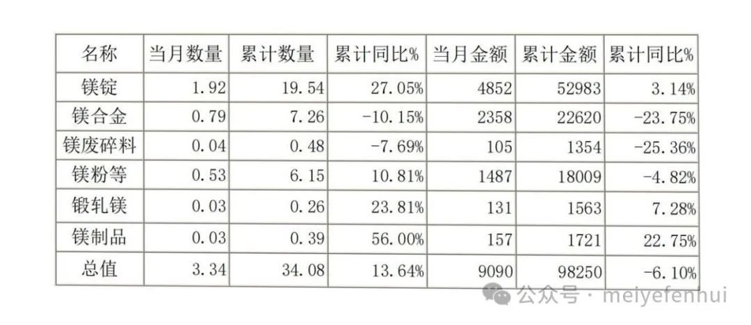 2024年1-9月中國(guó)各類鎂產(chǎn)品出口統(tǒng)計(jì)情況 (單位:萬(wàn)噸、萬(wàn)美元)