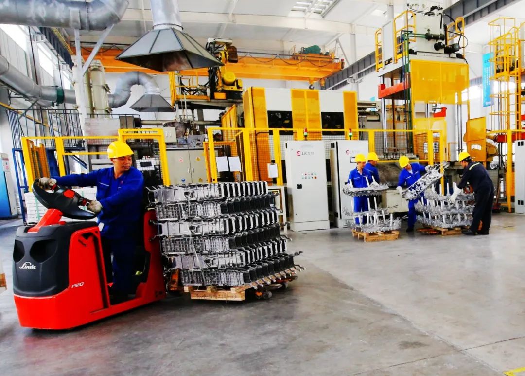 △博奧鎂鋁生產車間,工人將產品運輸入庫。(資料圖)